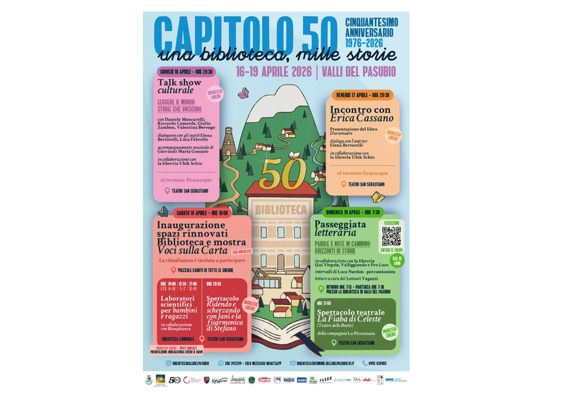 50 anni di biblioteca di Valli del Pasubio! Dal 16 al 19 aprile, tanti eventi da non perdere.