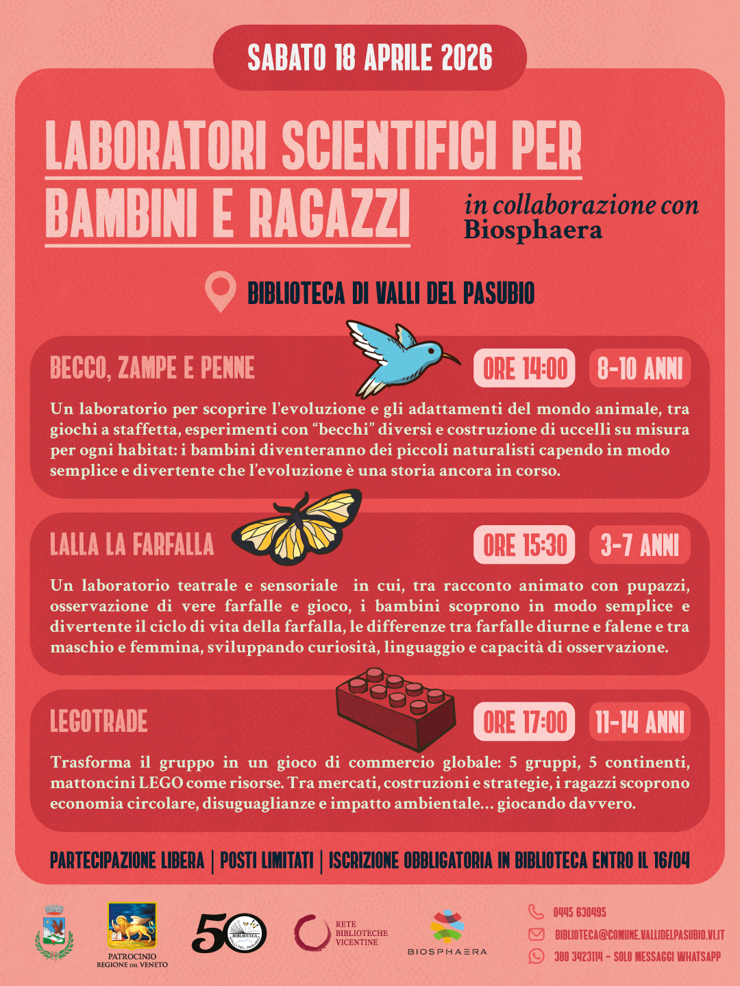 Ingresso libero ad ogni evento ma è obbligatoria l'iscrizione ai laboratori scientifici per bambini e ragazzi contattando la biblioteca e per partecipare alla passeggiata letteraria è necessario iscriversi al link https://form.gle/gFQt82Y2sPzeSrSc9