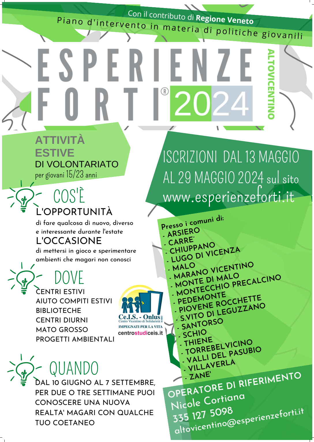 Operatore di riferimento Nicole Cortiana cell. 3351275098 - Mail: altovicentino@esperienzeforti.it